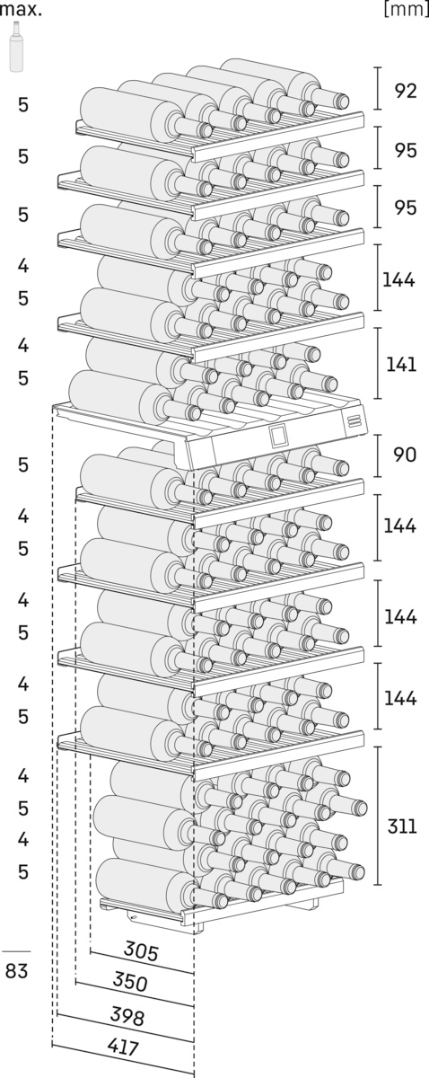 Оптимальная влажность воздуха – это один из важнейших критериев для правильного хранения вин. Это позволяет сохранить эластичность пробок и предотвращает их высыхание. Чтобы пробка не высыхала, бутылки следует хранить в горизонтальном положении. Благодаря постоянно поддерживаемой влажности 50 % винные шкафы создают идеальные условия для хранения вина. Влажность воздуха в винных климатических шкафах может по потребности регулироваться при помощи кнопки вентиляции.