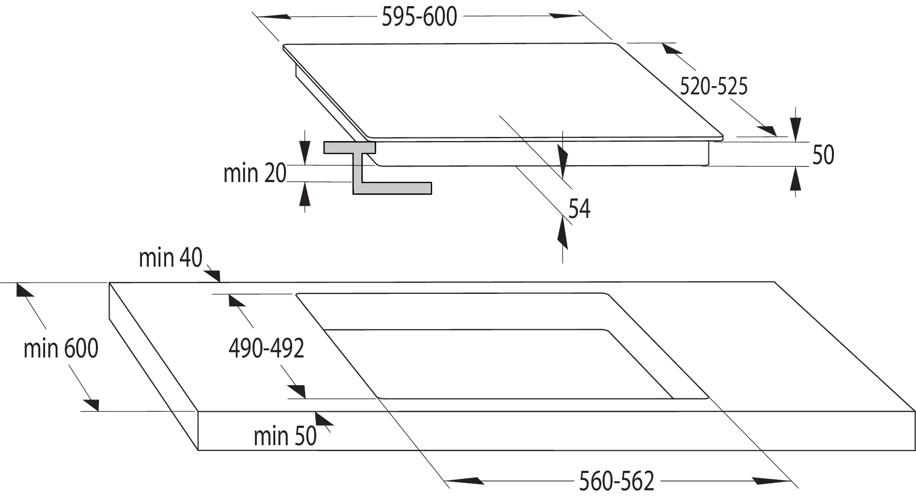 Ширина ниши для встраивания, мм