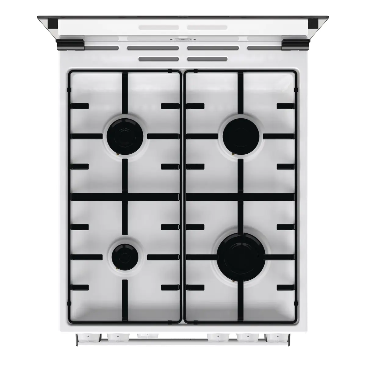 4 газовые конфоркиПередняя левая: малая Ø 5,4 см, 1 кВт, Передняя правая: большая Ø 9,9 см, 3 кВт, Задняя левая: нормальная Ø 7,4 см, 1,9 кВт, Задняя правая: нормальная Ø 7,4 см, 1,9 кВт