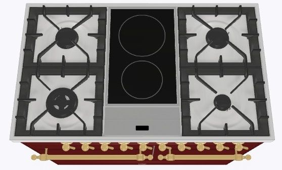 2 индукционные, 4 газовые, 1 Dual конфорка