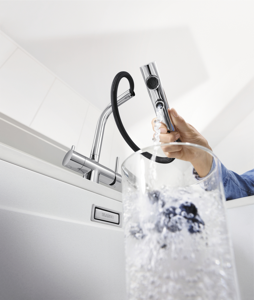 Смеситель с подключением фильтра FONTAS-S II 525206 от Blanco воплощает философию бескомпромиссного качества, инновационного дизайна и функциональности, превращая самое активное место на кухне в продуманный, эргономичный и эстетичный центр для приготовления пищи.