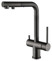 SERPENTINE оснащён функцией TRINKWASSER - излив смесителя имеет встроенный независимый канал для питьевой воды из фильтра, таким образом питьевая и водопроводная вода не смешиваются. Управление питьевой водой осуществляется отдельным рычагом, расположенным слева. Для пуска водопроводной воды используется большой рычаг справа.